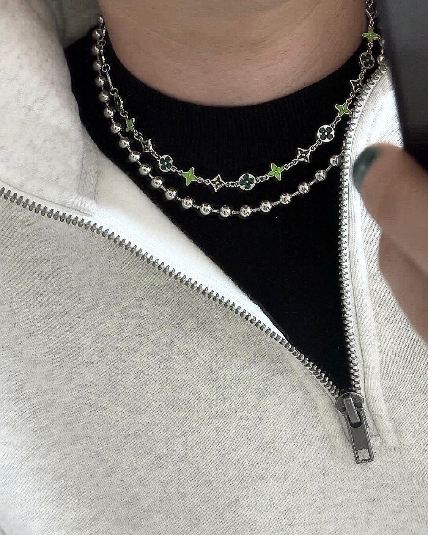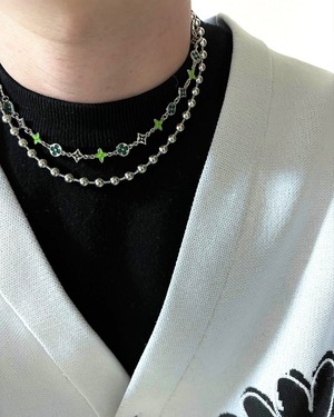 ポップなグリーンチャームが存在感抜群なリンクネックレス。